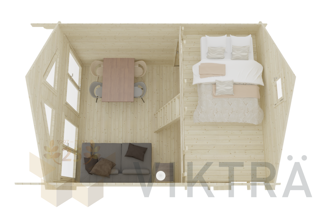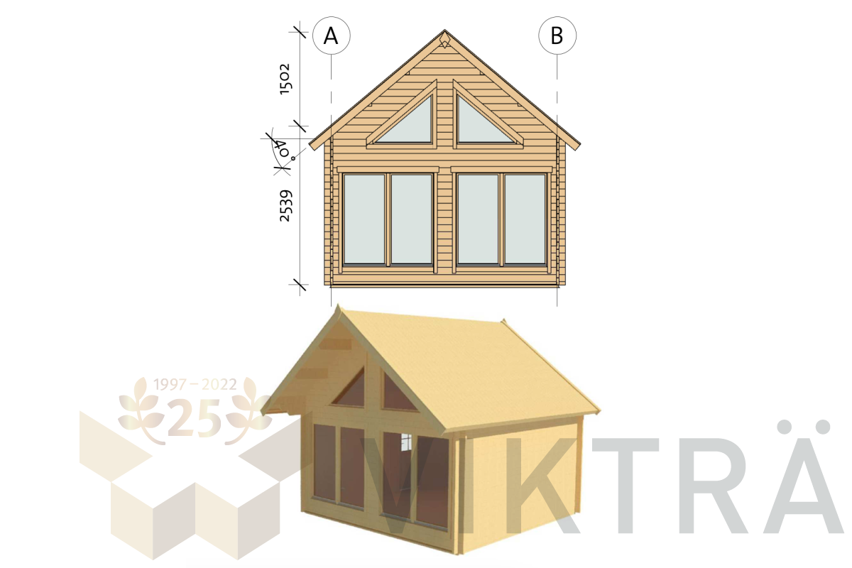 This building is produced from high-quality dried spruce wood, which has grown slowly due to the long winter months of this growing region. This, in turn, ensures the strength and durability of the material. The light color of spruce wood, small knots and good workability make it an ideal material for the production of our spruce houses.