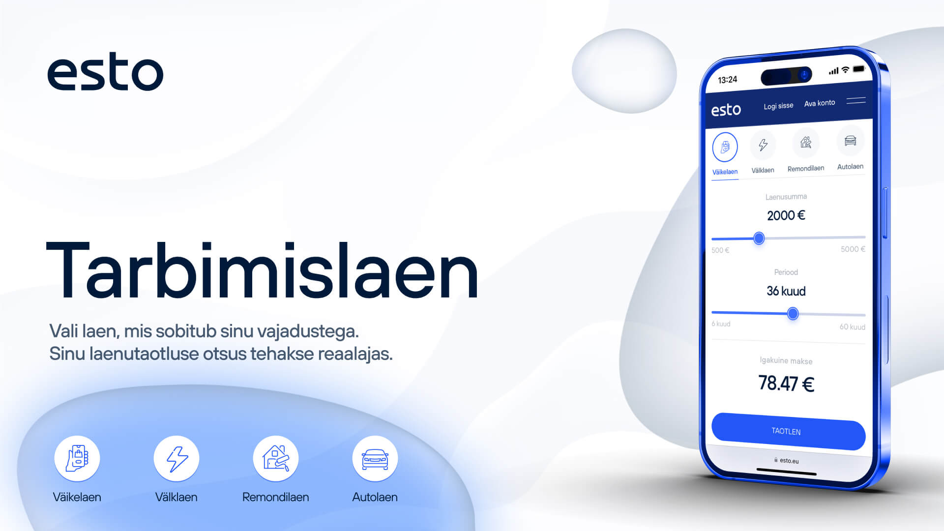 ESTO pakub erinevaid finantseerimisvõimalusi vastavalt sinu vajadustele. Olenemata sellest, kas otsid lahendust lisaraha saamiseks või soovid teha konkreetset finantseeringut kodu renoveerimiseks või sõiduki ostmiseks, on ESTO-l sulle lahendus olemas. Tutvu meie laenutoodetega allpool, et valida just endale sobivaim lahendus.